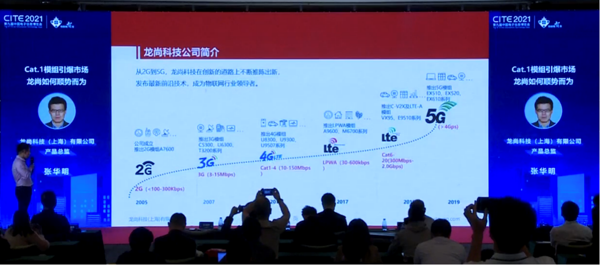 在2021CITE電子信息博覽會(huì)及Cat.1主題論壇上,龍尚科技產(chǎn)品總監(jiān)張華明受邀發(fā)表了題為《Cat.1萬(wàn)物互聯(lián)行業(yè)前行新動(dòng)力》的主題演講,重點(diǎn)圍繞Cat.1的優(yōu)勢(shì)、重點(diǎn)行業(yè)推廣,以及龍尚科技在Cat.1系列的整體布局。