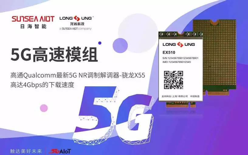 龍尚EX510 系列5G模組基于高通最新5G NR調(diào)制解調(diào)器-驍龍X55平臺(tái),采用M.2封裝方式。支持3G、4G、5G多模,支持5G NR sub-6GHz頻段。同時(shí)支持VoLTE語音功能、GNSS定位功能,支持SA和NSA兩種網(wǎng)絡(luò)部署。在5G模式下,可實(shí)現(xiàn)4Gbps的下載速度,主要應(yīng)用為固定無線接入終端,多媒體視頻終端,設(shè)備和移動(dòng)辦公等場(chǎng)景,面向全球市場(chǎng)。