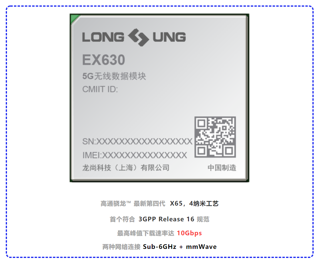 龍尚科技最新推出首個(gè)支持3GPP R16協(xié)議,以及支持mmWave和Sub-6GHz雙連接方式5G模組——EX630。