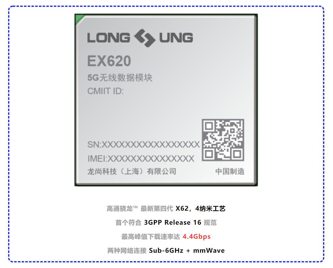 除此以外,為了滿足不同層級用戶的不同需求,龍尚科技同時(shí)推出5G NR模組—— EX620。