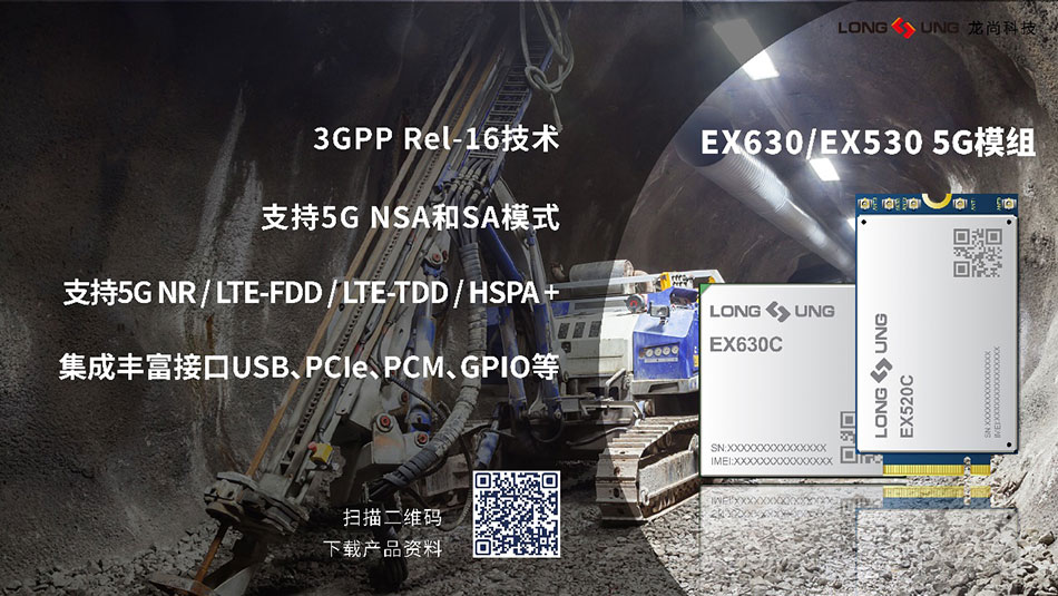龍尚科技5G模組EX630/EX530 支持獨立組網(wǎng)和非獨立組網(wǎng)模式,支持R16增強特性,全面支持FDD+TDD、FDD+FDD和TDD+TDD三種組合模式的TDD/FDD 5G Sub-6GHz載波聚合(CA),進(jìn)一步提高了5G服務(wù)能力和效率;內(nèi)置豐富網(wǎng)絡(luò)協(xié)議,集成多個工業(yè)標(biāo)準(zhǔn)接口(包括PCIe,USB3.1,GPIO等)并支持多種驅(qū)動和軟件功能;另外EX630/EX530 具備GNSS定位功能,包括GPS、GLONASS、Galileo、北斗和QZSS集成衛(wèi)星導(dǎo)航系統(tǒng);憑借EX630/EX530 的強大性能,可以滿足客戶對高速度、低延遲、大容量、高可靠性等要求,能夠幫助智能礦山實現(xiàn)5G無線聯(lián)網(wǎng)、遠(yuǎn)程控制、智能調(diào)度等應(yīng)用場景。